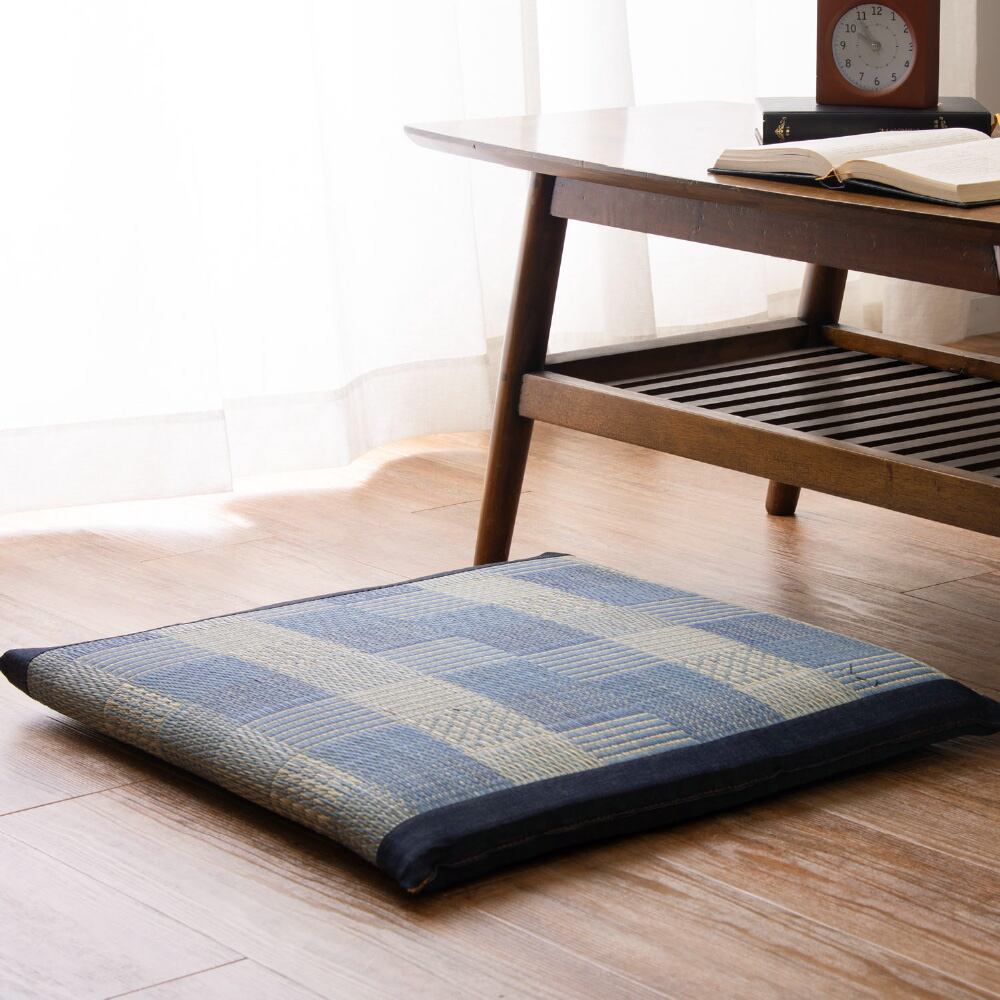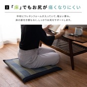 消臭や調湿機能もある優れた天然い草素材を使って織られたアイテムです。湿度の多い夏の季節でもサラサラのい草でべたつかず、2方縁で太ももなど足に当たる部分がアールになっているので足触りもよく、蒸れにくいのもポイントです。