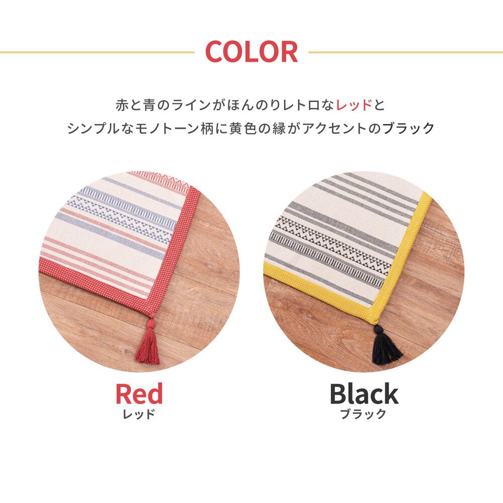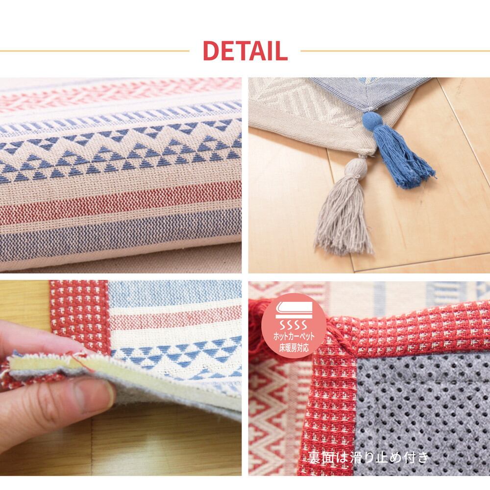 インテリアに合わせやすい、シンプルでナチュラルなデザインで、四隅に付いたタッセルがおしゃれ度をさらにアップ!