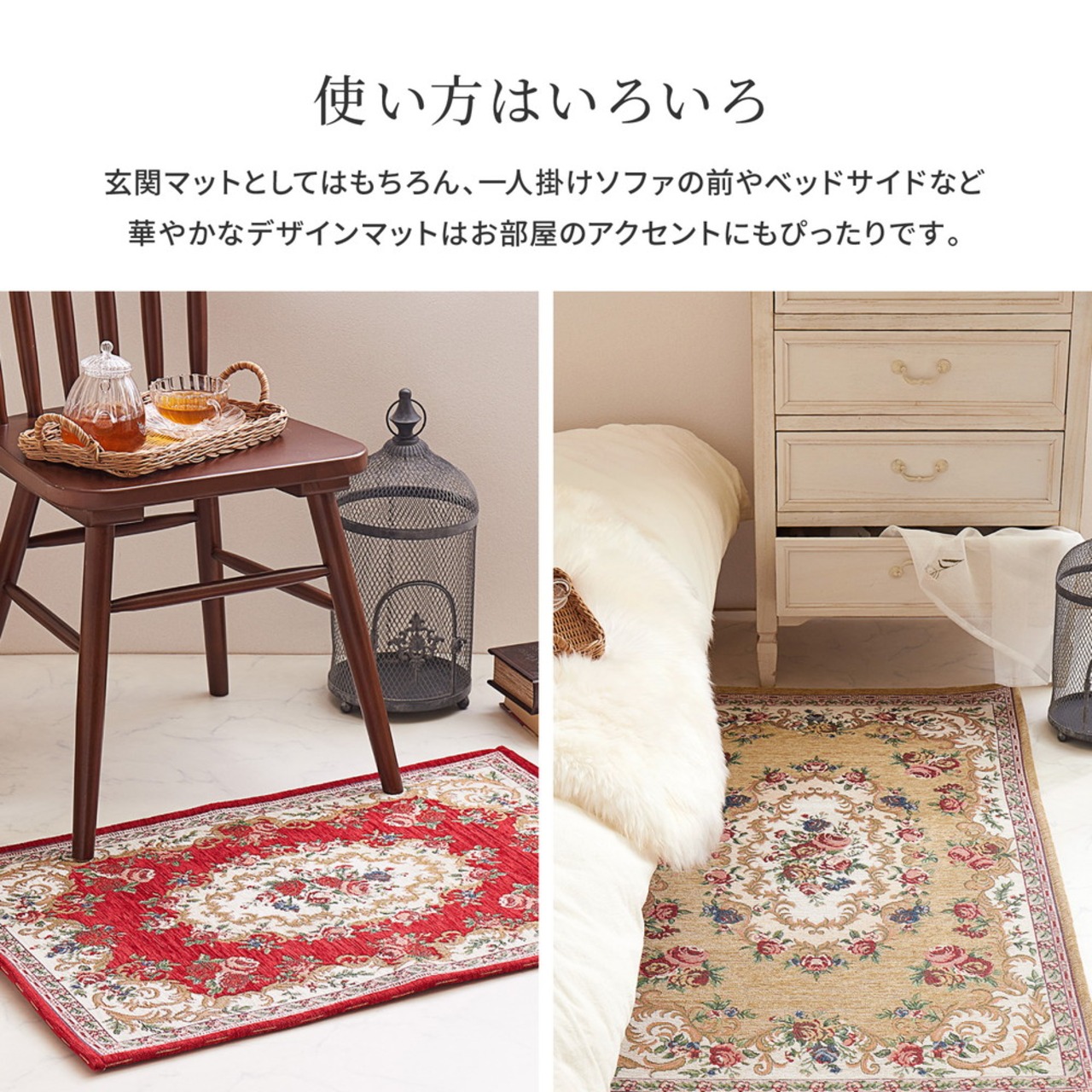 ちょっぴりゴージャスで刺繍のような柄が特徴のゴブラン織のマットです。