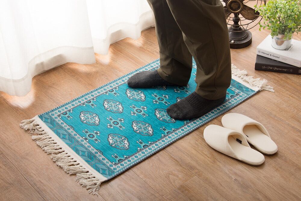 丸洗いできるから、キッチンなどの汚れやすい場所でも安心してお使いいただけます。裏面にはすべり止めが付いているので、ズレにくいのも嬉しいポイントです。