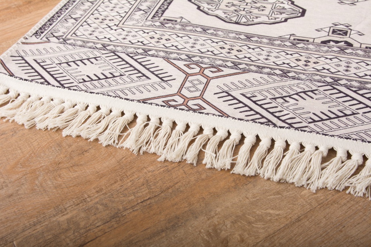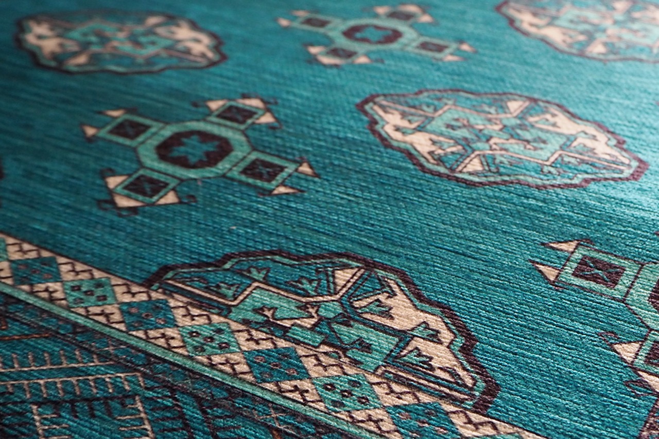 トルクメン絨毯とは、イラン北東部にすむトルコ系の遊牧民、トルクメン族によって昔から織り継がれている絨毯です。細かく丁寧な織り目としなやかで薄手に仕上げられるトルクメン絨毯は部族系ペルシャ絨毯の中でも細かな織りを誇り、正確なモチーフとシンプルな色遣いが垢抜けた印象を与えてくれます。そのトルクメンの風合いをプリントで繊細に再現しました!