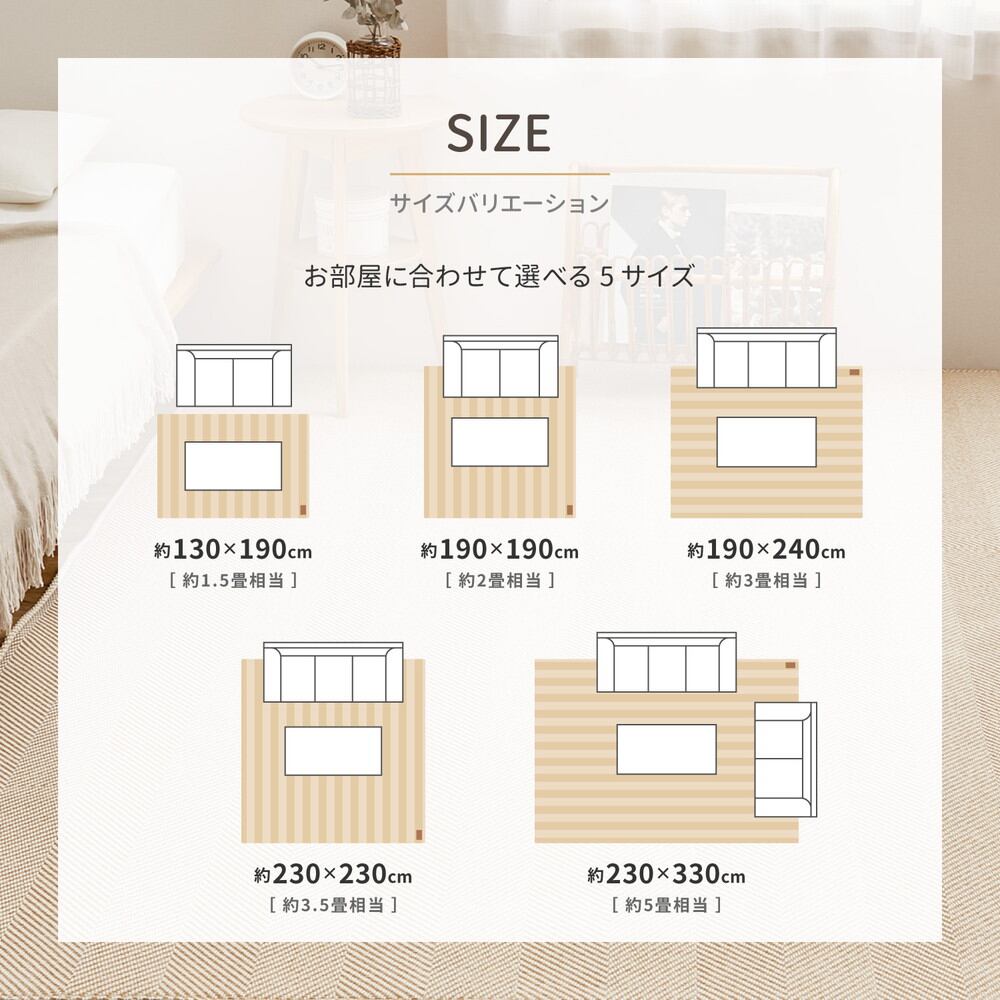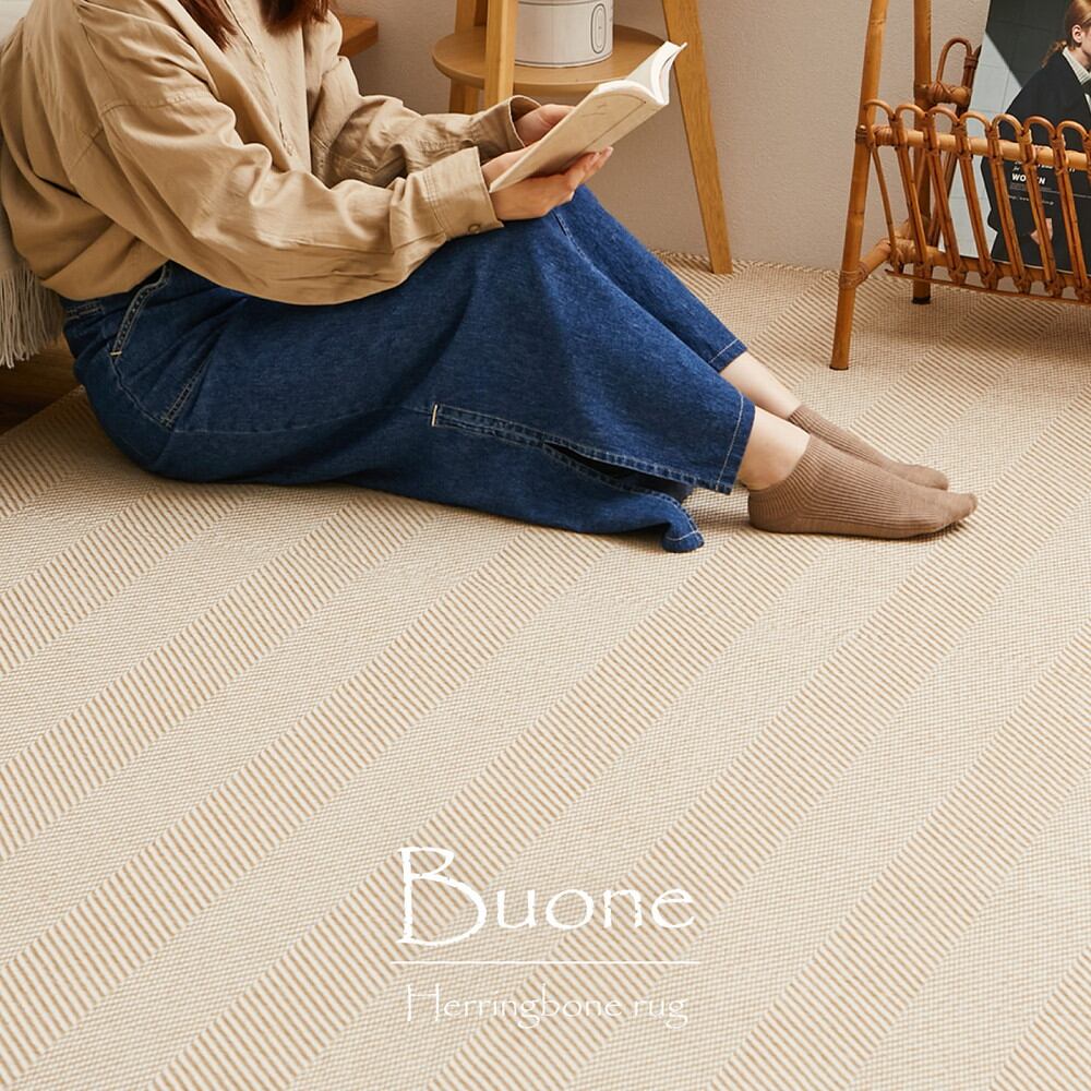 糸の組み合わせにこだわった、おしゃれなヘリンボンラグ。ざっくりとした織りで立体感があり、太めの間隔で仕上げたヘリンボン柄は、遠目で見るとボーダー柄のようにも見えるデザインに。ウレタン入りでほんのりふっくら、さらっとした肌ざわりで年中使いやすい素材感です。
