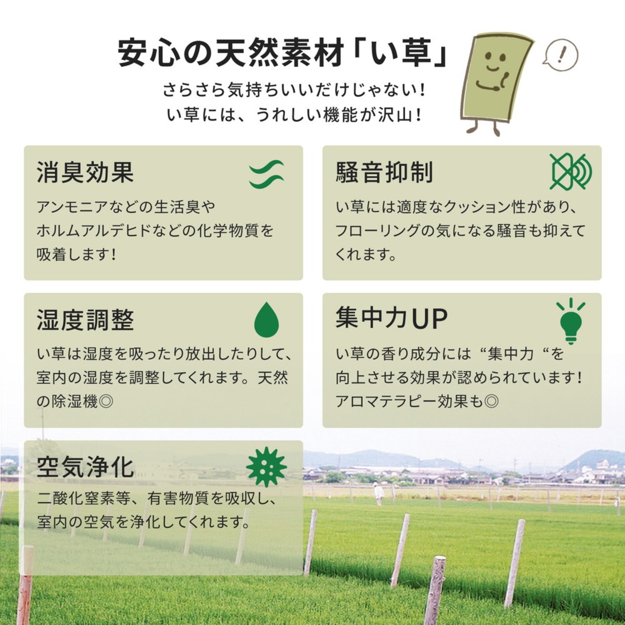 畳の素材である「い草」を気軽に味わうことができる敷き詰めタイプの上敷きです。