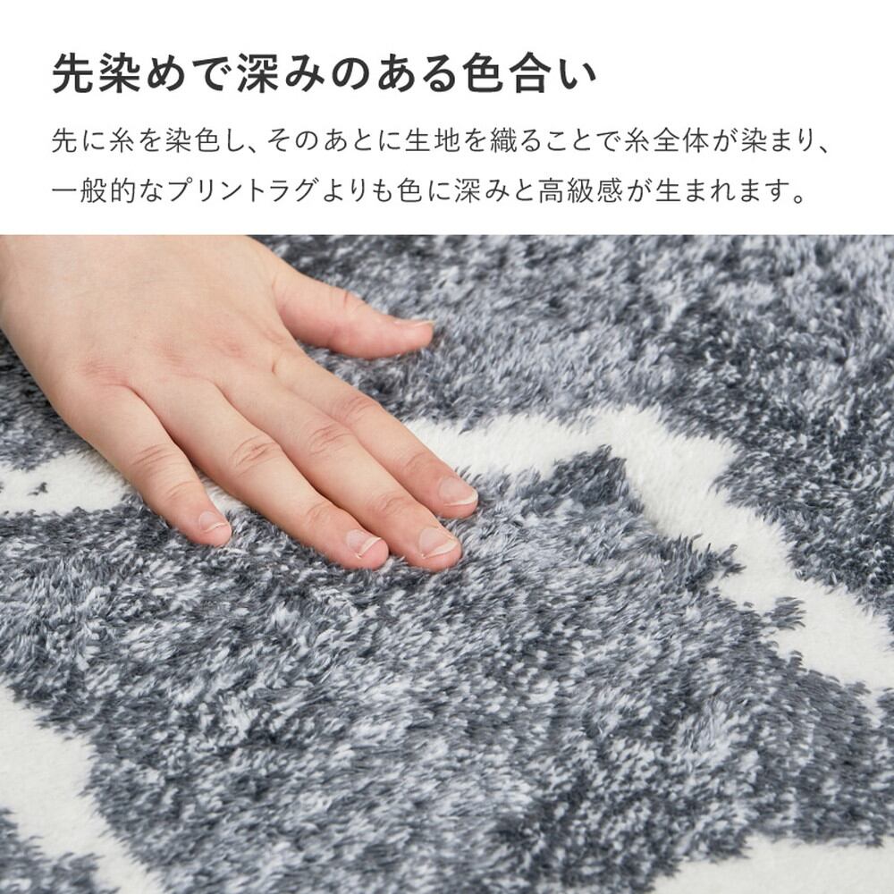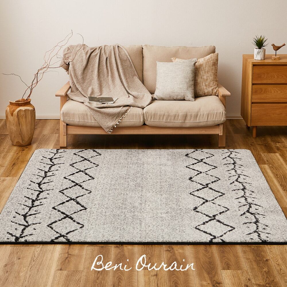 ベニワレンとはモロッカン北部に住むベルベル民族によって作られるモロッカンラグ。手書き風のゆるいラインとぬくもりのあるデザインで派手すぎない、さりげないデザインが人気です。先染め加工で一般的なプリントラグより色に深みがあり高級感のある仕上がりに。ウレタン入りでもっちり、座布団いらずのふっくらラグ。