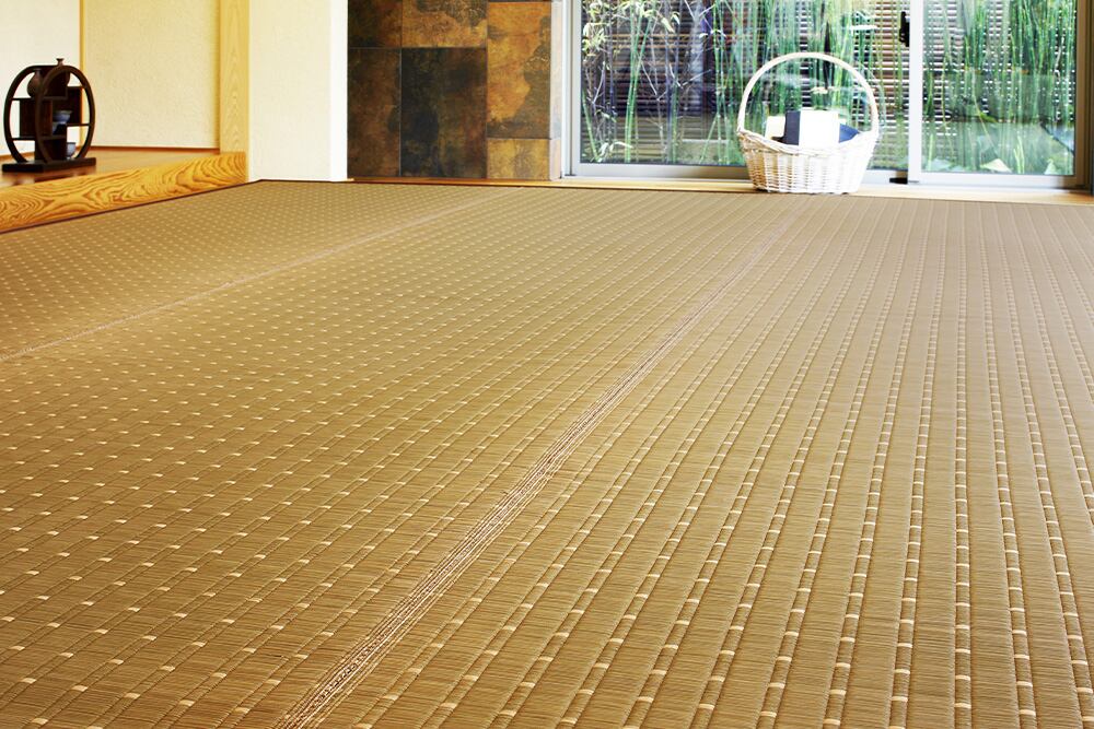 高品質な国産のい草と、日本の職人の技術が織りなす花ござ。掛川織で国産い草を凝縮。ボリューム感と高級感があります。敷きつめた時お部屋がより美しく見えるように縁は細くスマートに仕上げています。和洋を問わないモダンさでインテリアのベストアイテムとして永く愛されている商品です。