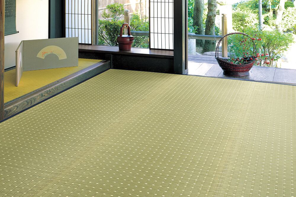 高品質な国産のい草と、日本の職人の技術が織りなす花ござ。掛川織で国産い草を凝縮。ボリューム感と高級感があります。敷きつめた時お部屋がより美しく見えるように縁は細くスマートに仕上げています。和洋を問わないモダンさでインテリアのベストアイテムとして永く愛されている商品です。