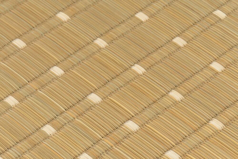 高品質な国産のい草と、日本の職人の技術が織りなす花ござ。掛川織で国産い草を凝縮。ボリューム感と高級感があります。敷きつめた時お部屋がより美しく見えるように縁は細くスマートに仕上げています。和洋を問わないモダンさでインテリアのベストアイテムとして永く愛されている商品です。