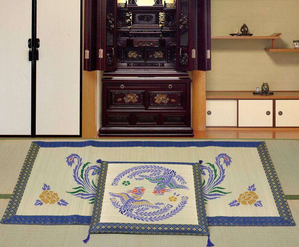 お仏壇の前で日常使われますが、特にお寺様が来る時にはご用意したいものです。夏用にふさわしい座布団をご用意しました。国産い草を100%使用した華やかなご仏前用の座布団です。リバーシブル仕様で異なるデザインをお楽しみいただけます。不織布袋付きです。