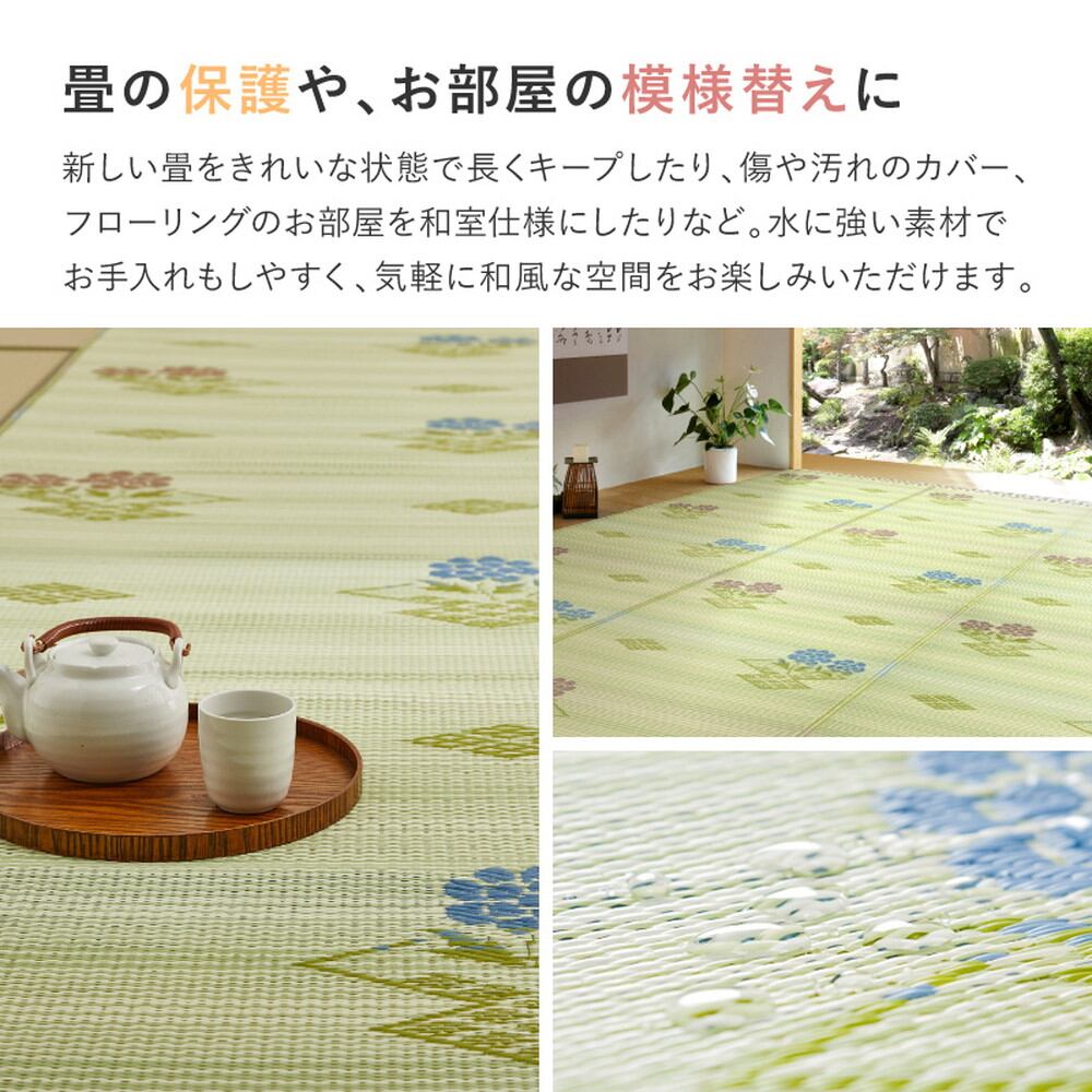 PP素材は水洗いできるので夏に海水浴などの休憩所等でもたびたび見かけますが、実は寒い東北ではビニール管内の空気層の保温効果を利用してあたたかく過ごすために冬に敷き詰めて使う家庭もあるそうです。昔ながらの和風テイスト柄で、懐かしい雰囲気が作れますよ。