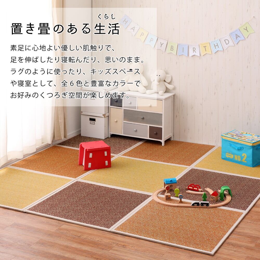 ポップでかわいいカラフル置き畳。シンプルでありながら存在感のある配色で、お部屋を明るく彩ってくれること間違いなし!新しい「い草の在り方」を感じさせてくれるこの「シャインシリーズ」で、オシャレで快適ない草ライフをお楽しみください。