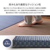 適度なクッション性があり、階下への配慮や床のキズ防止など、子育て中にもうれしい便利グッズ。天然い草を使用し、等間隔な織り方でサラッとなめらかな手触り。い草の空気清浄や湿度調整機能で年中快適です。