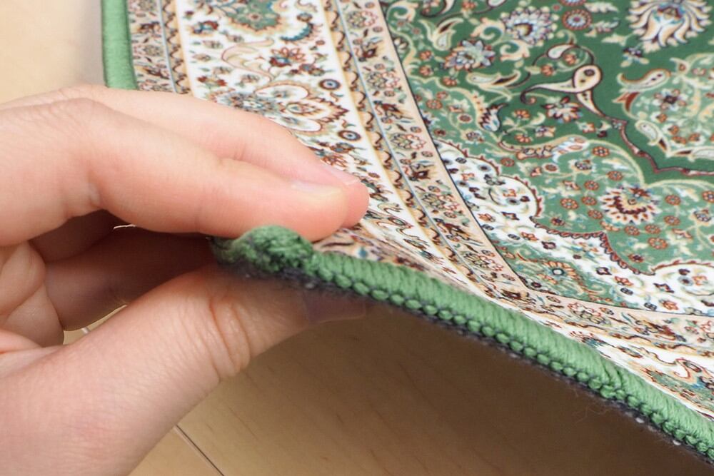 裏面は、不織布の上に滑りにくい加工を施しています。ドット柄の滑り止めに、強力な花柄の滑り止めをプラスしました。