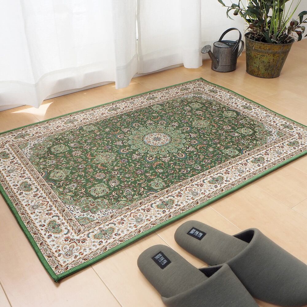洗える転写プリントマット。遠くから見ると繊細な柄は、近くで見るとカクカクとしたおもしろデザイン。